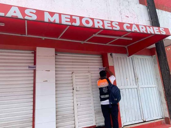 Tapachula, Chiapas; 29 de Septiembre del 2025.- Una de las sucursales de la carnicería “El Jarocho”, en Tapachula, fue clausurada por incumplir con algunas normas sanitarias, ya que denuncias de los vecinos indicaban que de las instalaciones de dicho comercio emanaban olores nauseabundos que invadían toda la zona.