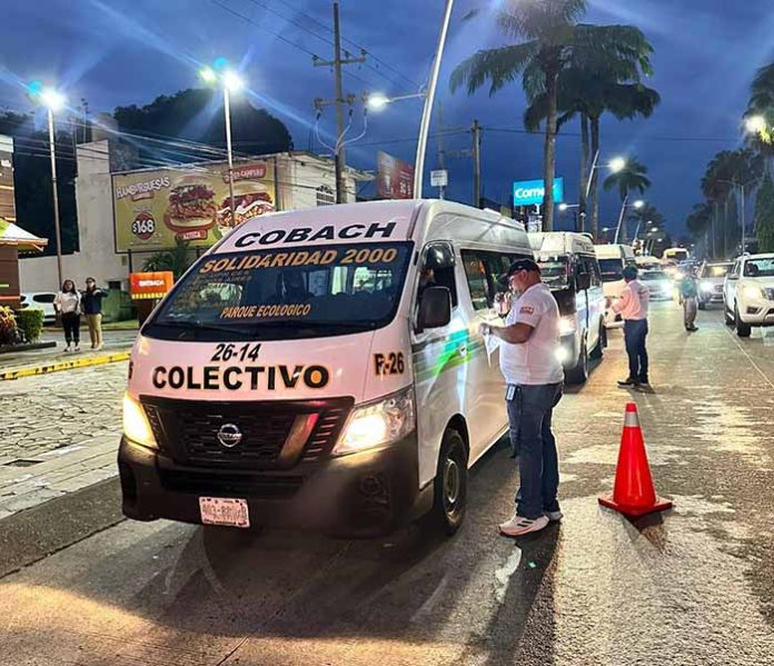 Durante el despliegue del operativo, el personal de la SMyT, supervisaron vehículos, de los cuales 32 fueron unidades del servicio colectivo, 11 taxis y 3 vehículos particulares.