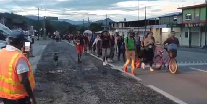 En Escuintla, tras un diálogo con las autoridades migratorias, no se logró que los extranjeros desistieran en su objetivo de seguir caminando con rumbo a la Ciudad de México.