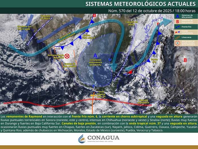 * Canales de Baja Presión en el Pacífico, la Onda Tropical 37 y Frentes Fríos Continuarán Provocando Lluvias Fuertes e Intensas a lo Largo de la Semana