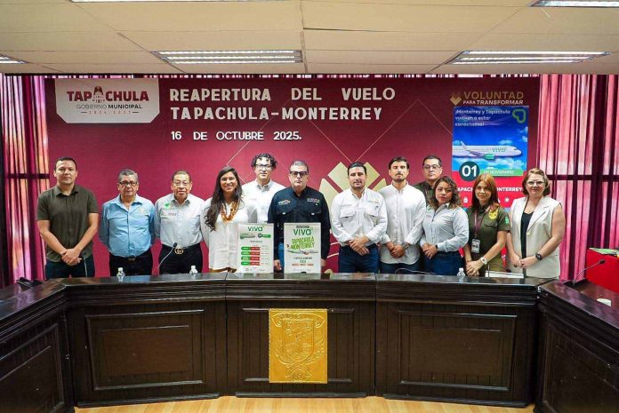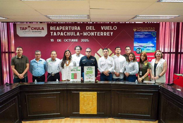 Tapachula, Chiapas.- El presidente municipal Yamil Melgar Bravo, destacó que la reapertura del vuelo Tapachula–Monterrey de Viva Aerobús representa un paso firme en el fortalecimiento de la conectividad aérea y en el impulso a la productividad del Soconusco, con el respaldo decidido del gobernador Eduardo Ramírez Aguilar.