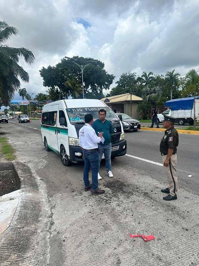 Tapachula, Chiapas; 19 de Octubre de 2025.- La Secretaría de Movilidad y Transporte (SMyT) de Chiapas, en coordinación con autoridades de los tres niveles de Gobierno, llevó a cabo un operativo de inspección y vigilancia sobre la carretera a Puerto Madero, frente al estadio olímpico de Tapachula, con el objetivo de verificar que las unidades del transporte público cumplan con la Ley de Movilidad y Transporte vigente.