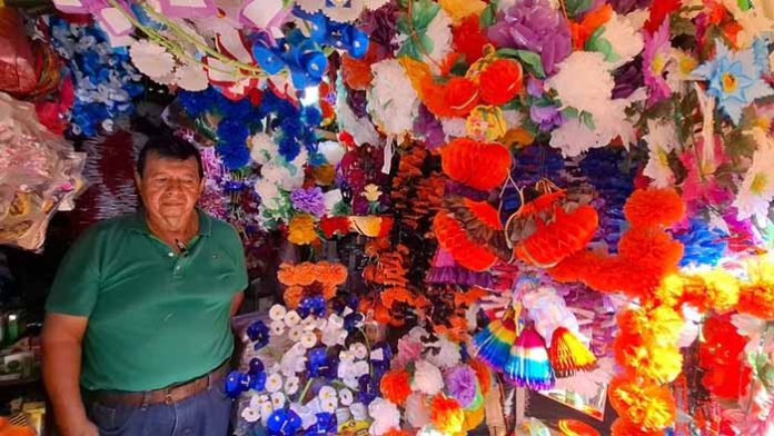 Tapachula, Chiapas; 24 de Octubre de 2025.- La celebración del Día de Muertos se aproxima, pero los comerciantes de adornos tradicionales enfrentan un panorama complicado.