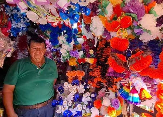 Su negocio, dedicado a la elaboración y venta de papel picado, enramadas, cascarones y coronitas, depende por completo de las fechas festivas. Sin embargo, la situación económica ha reducido significativamente sus ingresos durante los últimos dos años.