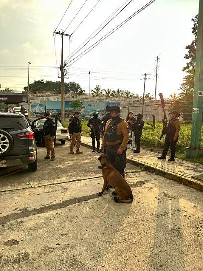 En Tapachula, a la altura del entronque y Libramiento Sur Poniente, participaron elementos del Grupo Especial de Reacción Inmediata (GERI), la Policía Estatal Vial Preventiva, la Vialidad Municipal, la Secretaría de Seguridad Pública Municipal Canina K-9 y personal de la SMyT.
