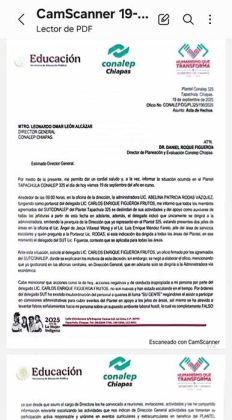 Tapachula Chiapas 4 de Noviembre del 2025.– Empleados del Colegio Nacional de Educación Profesional Técnica (CONALEP) de Chiapas están solicitando la intervención de la Secretaría Anticorrupción y de los órganos de control interno de la institución, para que se investiguen los presuntos actos de corrupción que se están cometiendo por funcionarios de dicha dependencia.