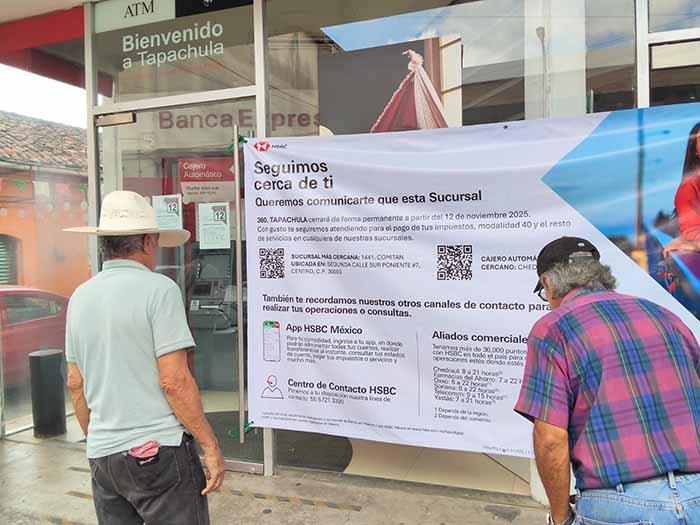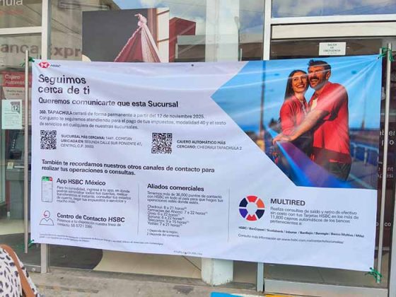 Tapachula, Chiapas; 14 de Noviembre de 2025.- La Secretaría de la Frontera Sur del Gobierno de Chiapas ha manifestado su profunda preocupación ante el cierre definitivo de la última sucursal del banco HSBC en la Ciudad de Tapachula.
