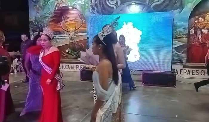 Los lamentables hechos ocurrieron el pasado sábado por la noche, en pleno parque central de esta localidad costeña, cuando el jurado calificador del certamen de belleza dio su veredicto a favor de la participante Gema, lo cual detonó la inconformidad de un grupo de personas, quienes apoyaban a otra participante.