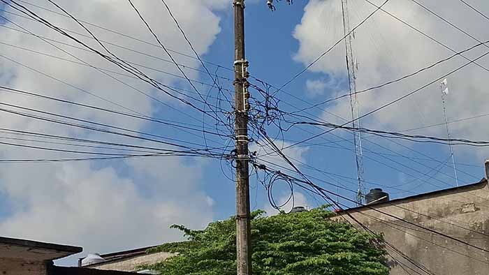 Pedro Valdemar Hernández López, integrante de la Asociación, señaló que las estructuras están saturadas y presentan cables colgando a baja altura, situación que podría derivar en accidentes graves.
