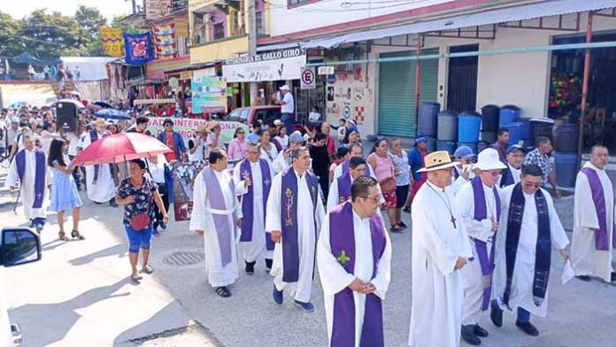 El contingente de feligreses procedentes de la República de Guatemala, recorrió las principales calles del Municipio de Suchiate, y concluyó en la iglesia católica de la cabecera municipal. EL ORBE/ Ernesto L. Quinteros