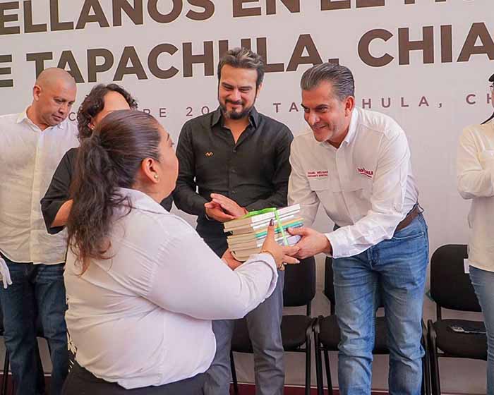 Tapachula, Chiapas; 17 de Diciembre.- El alcalde de Tapachula, Yamil Melgar, asistió a la ceremonia de Entrega de Becas Rosario Castellanos, donde se reunió con el Secretario de Educación del Estado, Mtro. Roger Mandujano. En este marco, el presidente Melgar reconoció los significativos avances en materia educativa en Chiapas, con un especial énfasis en el programa de alfabetización «Chiapas Puede».