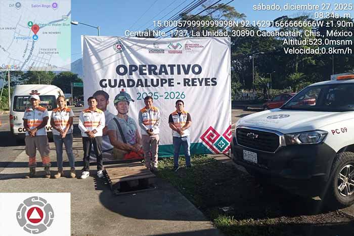 Tapachula, Chiapas; 27 de Diciembre del 2025.- En el marco del actual periodo vacacional, la Coordinación de Protección Civil del Estado de Chiapas, a través de la Delegación Regional X Soconusco Alto, informó que hasta el momento se mantiene saldo blanco en playas, ríos y centros recreativos, gracias a los recorridos preventivos y módulos de atención instalados en distintos municipios.
