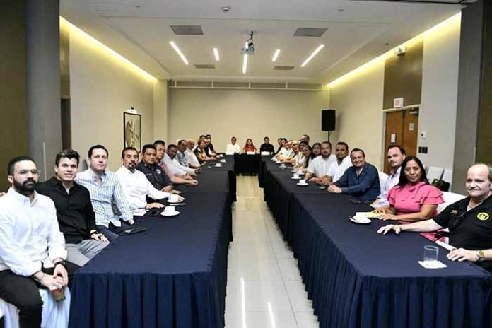 El presidente municipal de Tapachula, Yamil Melgar Bravo sostuvo una reunión de trabajo con la secretaria general de Gobierno y Mediación de Chiapas, Dulce María Rodríguez Ovando, el secretario de Economía y Turismo Municipal, Jorge Vega, empresarias y empresarios, con el objetivo de escuchar sus planteamientos, necesidades y peticiones.