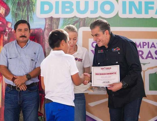 Al encabezar la premiación en el parque central Miguel Hidalgo, el presidente municipal, Yamil Melgar Bravo, acompañado de la presidenta honoraria del Sistema DIF Tapachula, Beba Pedrero, reconoció el talento de los niños y niñas de Tapachula quienes a través del dibujo externaron su compromiso con su ciudad.
