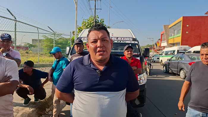 Tapachula, Chiapas; 19 de Enero de 2026.- Este lunes, conductores de las rutas Estación Galaxias y Galaxia Centro se manifestaron de manera pacífica a las afueras de la colonia Colinas del Rey, como protesta contra la operación de unidades irregulares que, según denuncian, ponen en peligro la seguridad de los usuarios y la estabilidad laboral de los choferes legales.