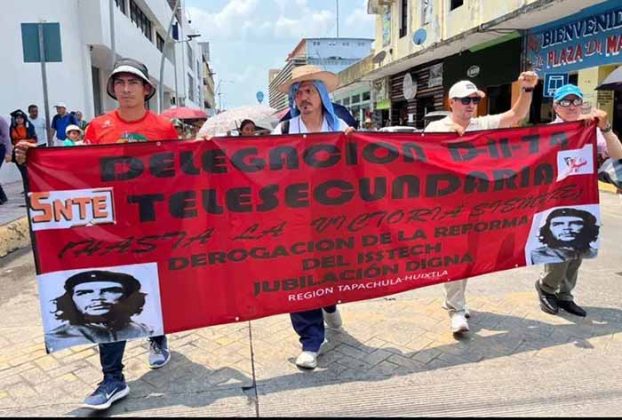 Tapachula, Chiapas; 24 de Enero de 2026.- Integrantes de la Coordinadora Regional Costa Grande, pertenecientes a la Sección VII del SNTE-CNTE, anunciaron una movilización para este lunes 26 de enero, con el objetivo de exigir al Gobierno Federal el cumplimiento de demandas históricas en materia de pensiones, jubilaciones y servicios de salud.