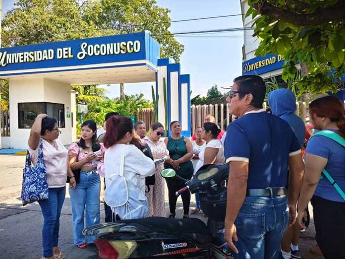 La comunidad universitaria hizo un llamado a las autoridades de la Universidad del Soconusco para que actúen con transparencia y responsabilidad social, evitando decisiones unilaterales que pongan en riesgo la continuidad académica de los estudiantes y la confianza de las familias. ELORBE/ JC