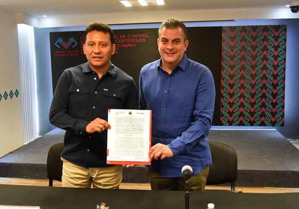 En cumplimiento a la política de fortalecimiento institucional en materia de seguridad, el presidente municipal de Tapachula, Yamil Melgar Bravo, participó junto al director general del Centro Estatal de Control y Confianza Certificado del Estado de Chiapas, José Alonso Llaven Villarreal, en la firma del Convenio de Coordinación entre el Centro Estatal de Control y Confianza y el Ayuntamiento de Tapachula.