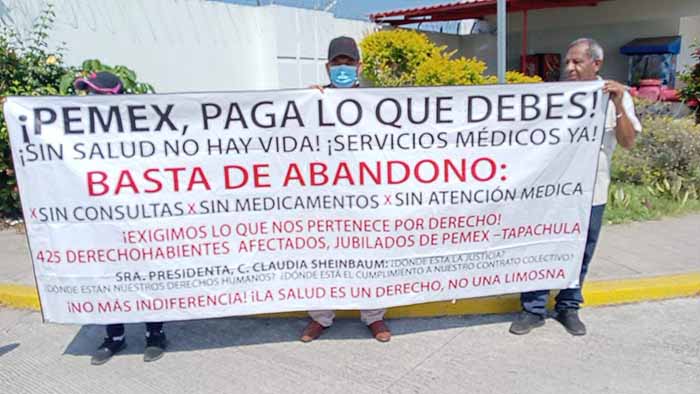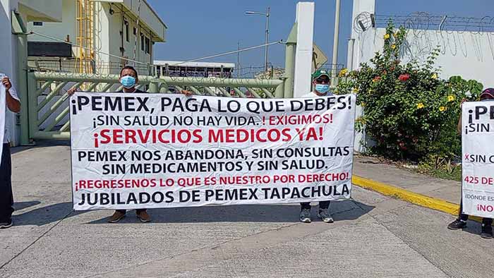 Tapachula, Chiapas; 23 de Febrero de 2026.- La operación de la Terminal de Almacenamiento y Despacho (TAD) de PEMEX en Puerto Chiapas enfrenta la amenaza de un paro total ante la exigencia de trabajadores activos y jubilados de la Sección 47, quienes denuncian la suspensión del servicio médico y el fallecimiento reciente de un compañero presuntamente por negligencia.