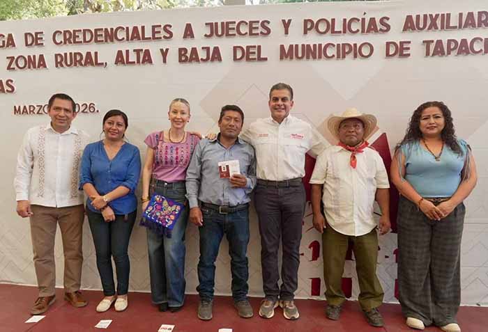 Tapachula, Chiapas; 3 de marzo de 2026.- Con el objetivo de fortalecer la seguridad y consolidar la paz social, el presidente municipal, Yamil Melgar Bravo, encabezó la entrega de credenciales a jueces rurales y policías auxiliares de la zona baja y alta, subrayando que estas acciones brindan certeza jurídica e identidad institucional a quienes son el primer contacto en sus comunidades.