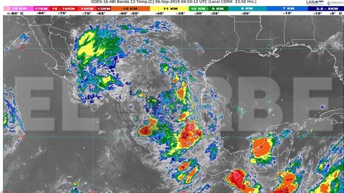 La onda tropical No. 34 y los remanentes de «FERNAND» dejarán de afectar al país. Sin embargo, la interacción de la onda tropical No. 35 con una canal de baja presión sobre el sureste del país, ocasionará desarrollo de nubosidad con tormentas el dicha región y en la Península de Yucatán.
