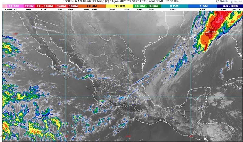 Se pronostican temperaturas mínimas de -10 a -5 grados Celsius con heladas en las sierras de Sonora, Chihuahua y Durango; de -5 a 0 grados Celsius con heladas en zonas montañosas de Baja California, Coahuila, Nuevo León, San Luis Potosí, Zacatecas, Aguascalientes, Jalisco, Guanajuato, Hidalgo, Puebla, Tlaxcala y el Estado de México, y valores de 0 a 5 grados Celsius con heladas en las sierras de Tamaulipas, Michoacán, Querétaro, Ciudad de México, Veracruz y Oaxaca. Boletín Oficial