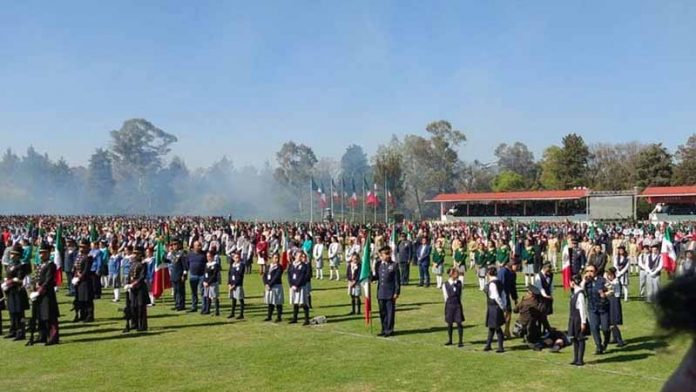 Ciudad de México, 24 de febrero.-Debido a las altas temperaturas, que alcanzaron los 22 grados en Campo Marte, alrededor de 15 menores de edad y una integrante del Heroico Colegio Militar que asistieron a la ceremonia por el Día de la Bandera tuvieron que salir del evento para ser atendidos por personal médico.