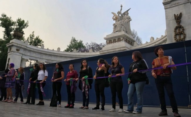 Vestidas de color violeta y con distintivos verdes, las mujeres se colocaron en línea recta por el Hemiciclo hasta llegar casi a las inmediaciones del Palacio de Bellas Artes.
