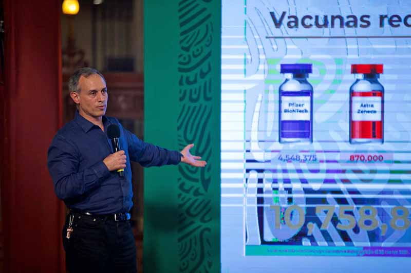 El país ha recibido un total de 9 millones 818 mil 375 dosis de vacunas envasadas de las farmacéuticas: Pfizer-BioNTech, AstraZeneca, Sinovac y de la vacuna rusa Sputnik V, además en el país el laboratorio Drugmex ha envasado 940 mil 470 dosis de la vacuna CanSino Biologics, para un total de 10 millones 758 mil 845 biológicos.