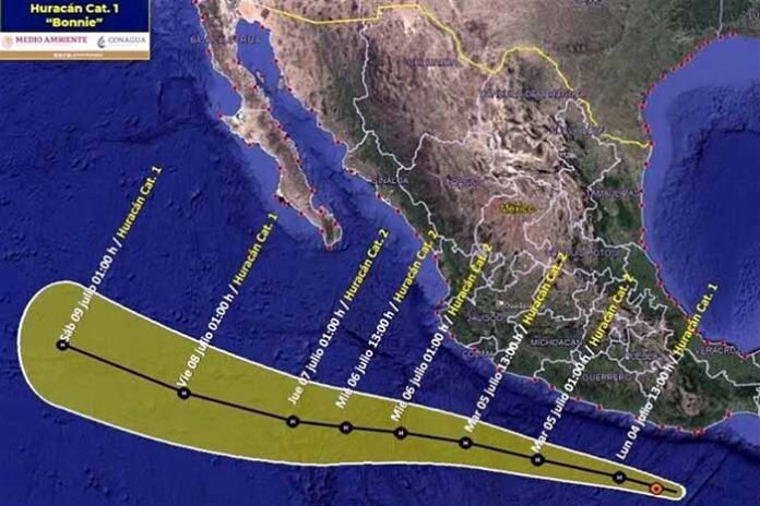 Ciudad de México; 5 de Julio.- «Bonnie» incrementó la velocidad de sus vientos y ahora es huracán categoría 3 en la escala Saffir-Simpson, así lo informó la Comisión Nacional del Agua.