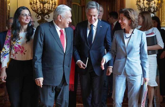 Ciudad de México.- El presidente Andrés Manuel López Obrador calificó la reunión que sostuvo la tarde de este lunes con el secretario de Estado de la Unión Americana, Antony Blinken y la secretaria de Comercio, Gina Raimondo, como «productiva y amistosa».