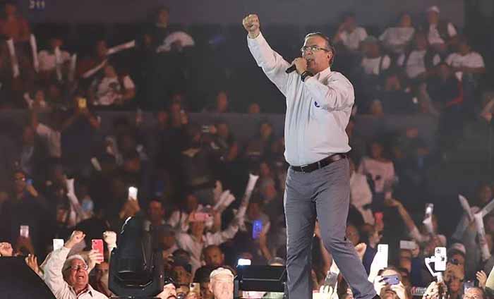 En una Arena Ciudad de México abarrotada con más de 22 mil personas, el exjefe de Gobierno pidió a los asistentes no salir de sus casas para participar en la encuesta, en caso de ser uno de los 12 mil afortunados que serán consultados.