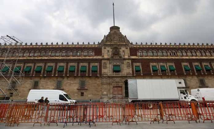 Ciudad de México, 28 de Agosto.-Comenzó la instalación del cerco de seguridad, templete, pantallas y equipo de audio para el mensaje a la nación del presidente Andrés Manuel López Obrador con motivo de su VI y último Informe de Gobierno.
