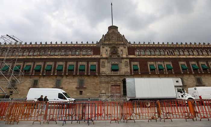 Mientras que en frente a Palacio Nacional inició la instalación de las estructuras para el templete, pantallas gigantes y bocinas.