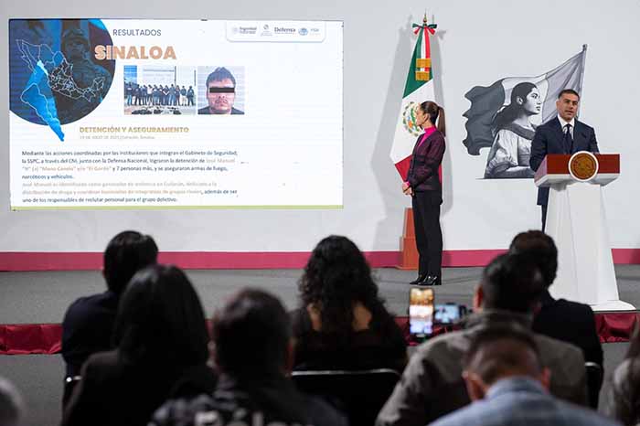 En la conferencia matutina, también presentó los resultados de la Estrategia Nacional de Seguridad, con la cual en los últimos 15 días se detuvieron a 784 personas por delitos de alto impacto, se aseguraron cerca de 400 armas de fuego y más de ocho toneladas de drogas, además de que se inhabilitaron 28 laboratorios clandestinos para la elaboración de metanfetaminas.