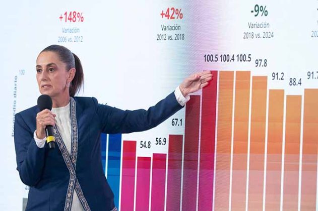 El director general de Pemex, Víctor Rodríguez Padilla, destacó que la reducción de la deuda se deriva de la disciplina financiera, planeación rigurosa, eficiencia operativa y una coordinación estrecha entre dependencias, con lo que deuda es la más baja en 11 años; además, mejoró su calificación crediticia y se avanzó en el pago a proveedores con un monto de 390 mil 203 mdp. Agregó que se estabilizó la producción de hidrocarburos con un incremento anual en más de 122 mil barriles diarios; asimismo, se mejoró la infraestructura y se optimizó la operación de las refinerías, cuyo rendimiento es cada vez más alto, el margen de refinación es positivo y ha alcanzado un promedio de 12 dólares por barril.