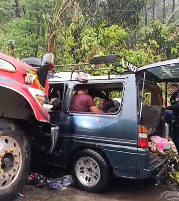 Escuintla, Guatemala 5 de Abril del 2026.– Una escena de tragedia y desesperación se vivió la tarde del pasado sábado sobre la ruta vieja que conecta Escuintla con la Ciudad de Guatemala, luego de un fuerte choque frontal entre un autobús de pasajeros y una combi, a la altura del kilómetro 49, en el sector conocido como piscinas San Luis.