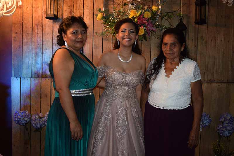 La quinceañera con sus abuelitas: Adelina & Lilia Santos.