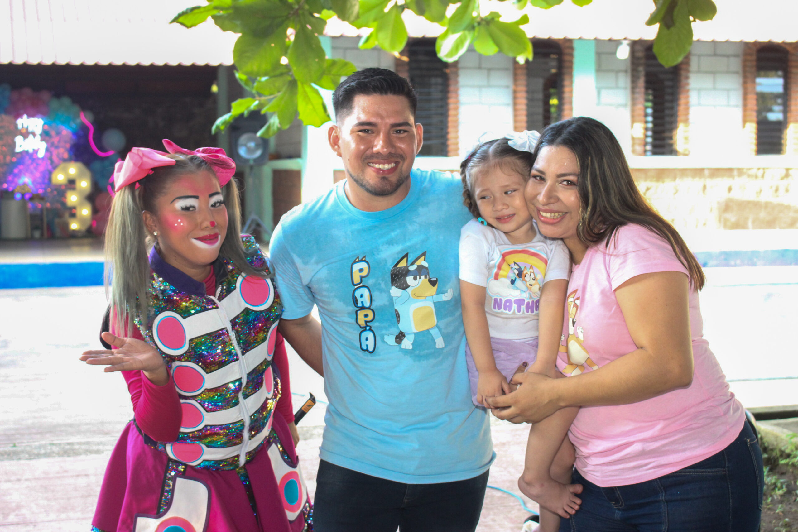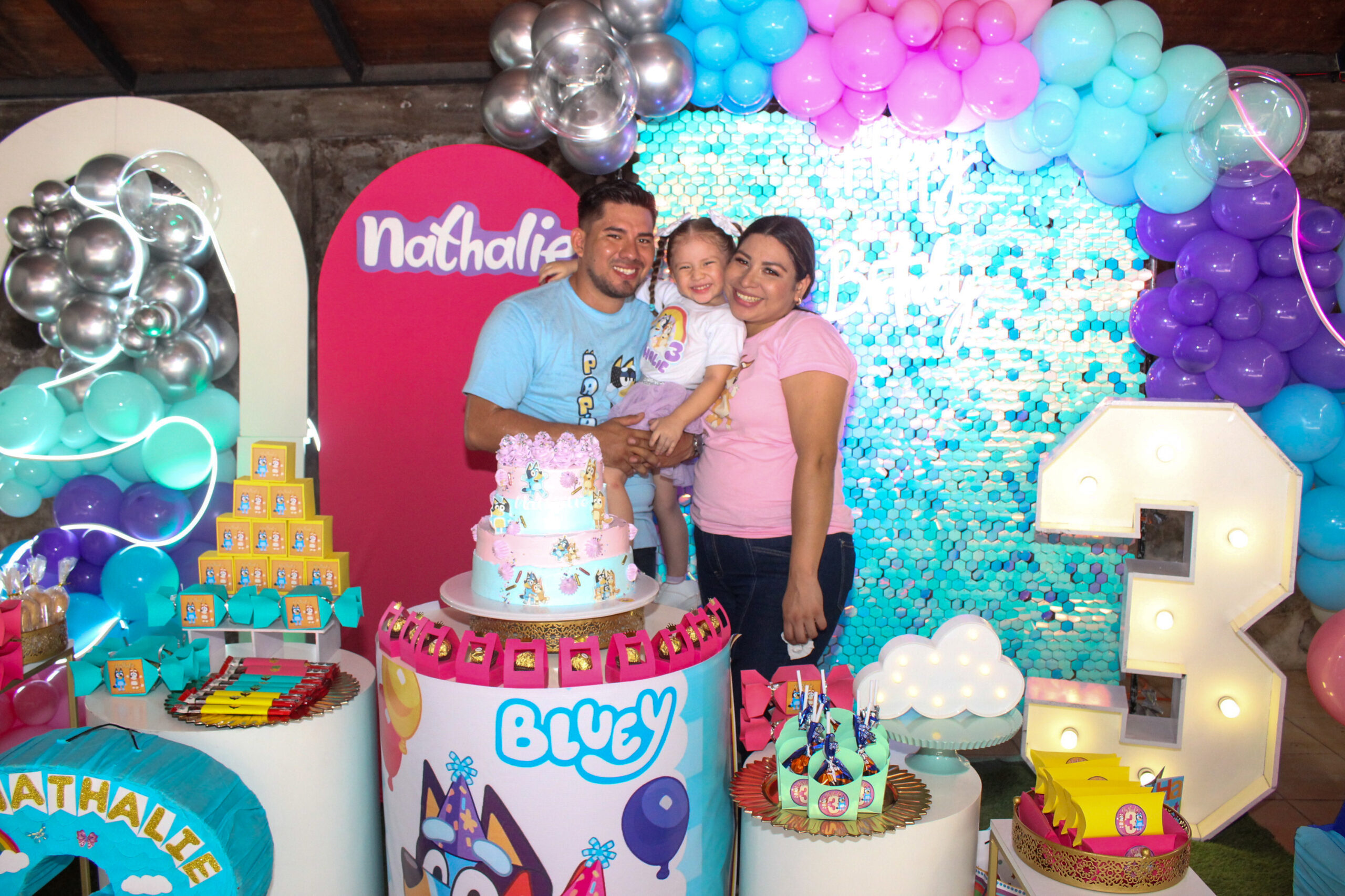 La feliz pareja que conforman Carolina Villarreal & Luis Ángel López, celebraron con la temática de «Bluey» los 3 añitos de vida de su pequeña heredera la bella Nathalie, que muy feliz en todo momento disfrutó junto a sus abuelitos, tíos, amigos y demás seres especiales de una linda tarde llena de pastel, juegos y el divertido show de la payasita «Chipi», quién hizo reír a los asistentes.