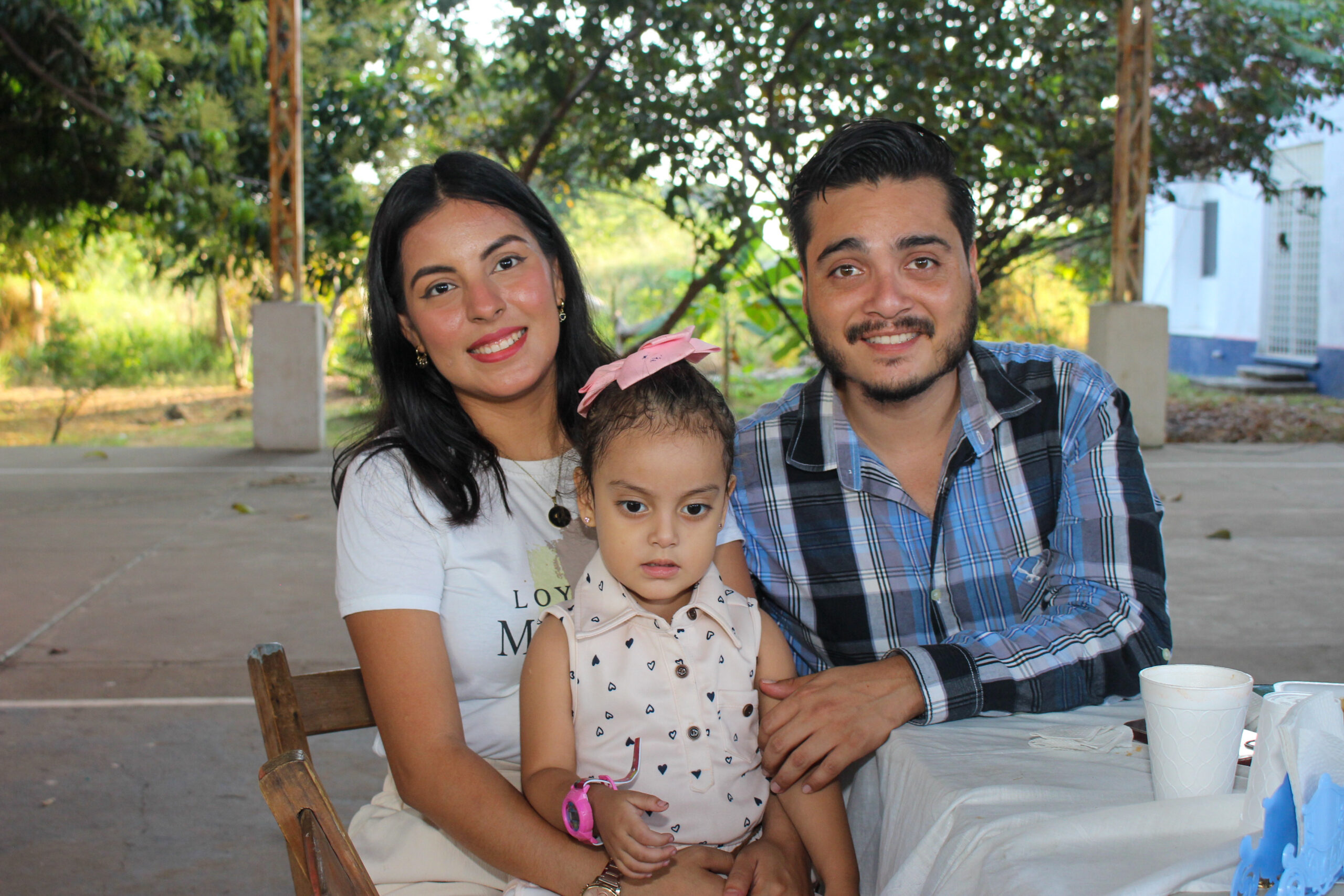 La pequeña Nathalie acompañada de sus padre y la payasita «Chipi».