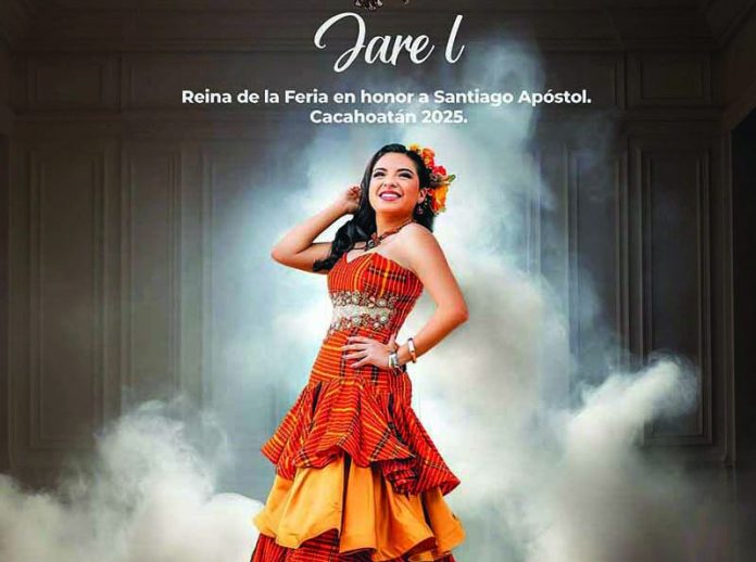 Jaretzy Maryen De León García, la joven de 18 años, estudiante de la Licenciatura de Gestión Turística, será la próxima Reina de la Feria Santiago Apóstol 2025, de Cacahoatán, Chiapas.