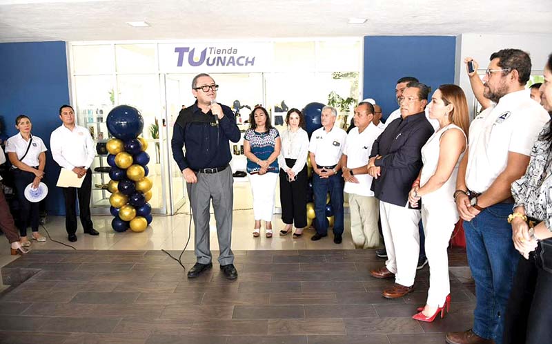 El rector de la Universidad Autónoma de Chiapas, Oswaldo Chacón Rojas, encabezó la reapertura de la Tienda UNACH en Tapachula, acompañado de autoridades y estudiantes. El espacio ofrece souvenirs y uniformes con el emblemático Ocelote, fortaleciendo la identidad universitaria y convirtiéndose en un punto de encuentro para la comunidad unachense.
