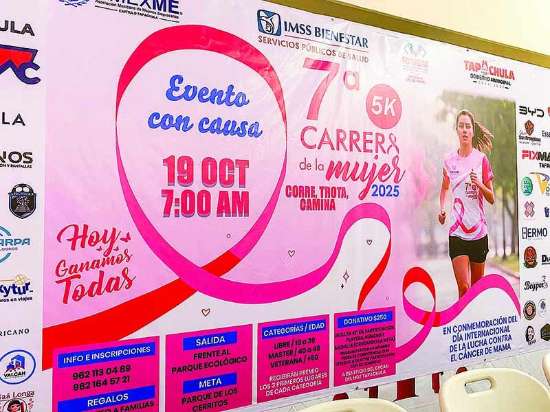 En el marco del “Mes Rosa”, la actividad busca fomentar la prevención del cáncer de mama y recaudar apoyos para el área de oncología del IMSS Tapachula. Además de premiar a las ganadoras por categoría, se realizarán sorteos y dinámicas para todas las participantes.
