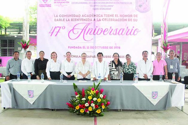 La Escuela Normal de Licenciatura en Educación Preescolar “Rosario Castellanos”, celebró su 47 aniversario de fundación con una serie de actividades culturales y deportivas que reunieron a la comunidad educativa. La ceremonia inaugural fue encabezada por el Dr. David Blanco, director de la institución, y la Mtra. Rosa Laura Vázquez Grajales, directora de Educación Superior; quienes estuvieron en la mesa del presídium y ofrecieron las palabras de apertura.