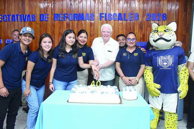 Con una emotiva ceremonia realizada en el Auditorio “Víctor Manuel Pimentel González”, la Facultad de Ciencias de la Administración C-IV de la UNACH celebró su 40 aniversario. La directora Dra. Isela Ramírez, junto al Dr. Juan Enrique Quintana, la Dra. Gisela Bravo y el C.P. Rogelio Jiménez, encabezaron el tradicional corte de pastel que marcó el inicio de las festividades.